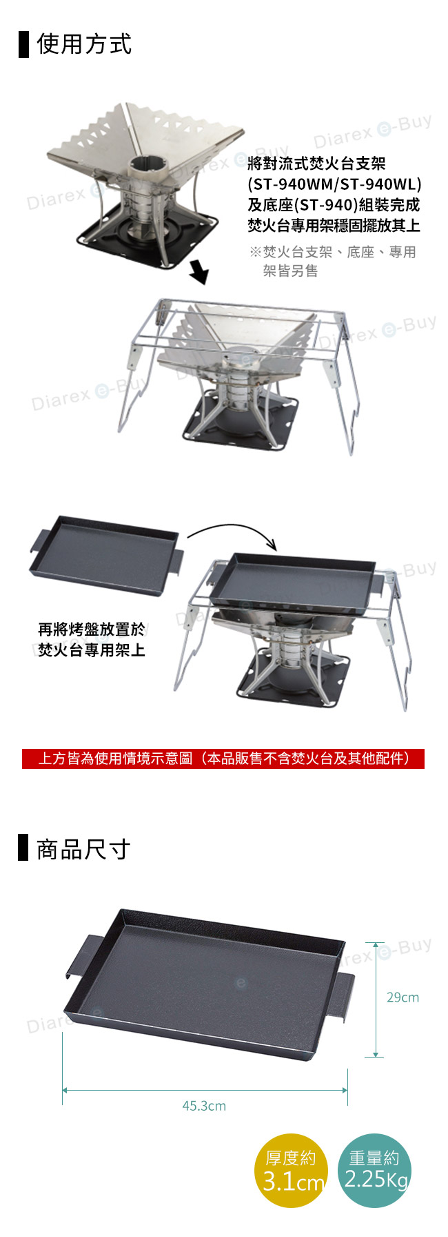 ●可穩固擺放於焚火台專用架,使用安全