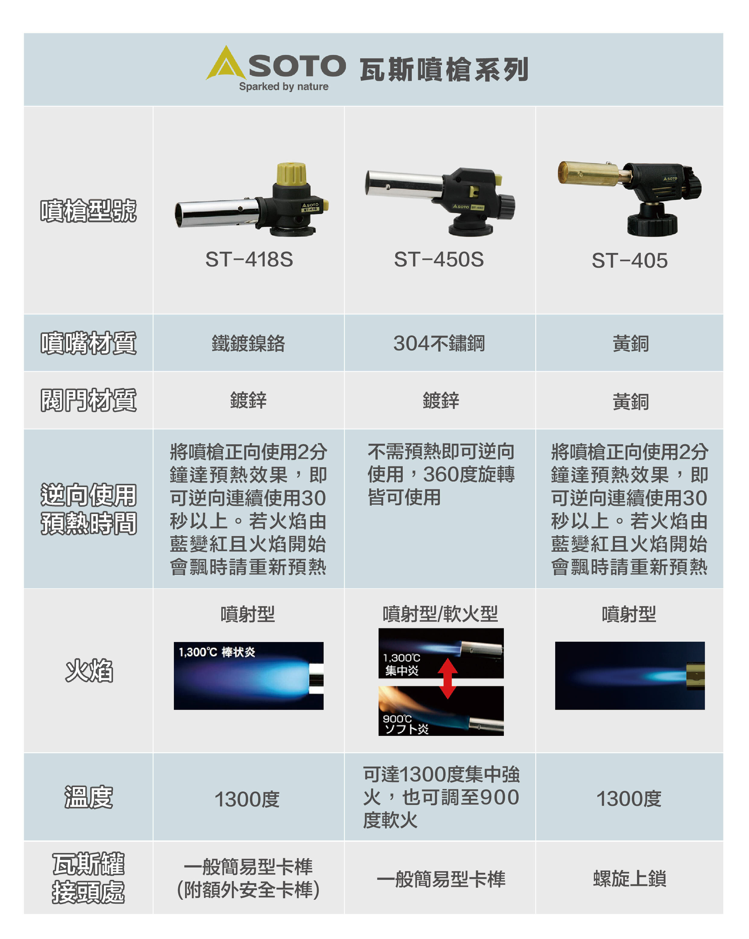 ● 點火後不需預熱,即可逆向噴燒並維持相同火力